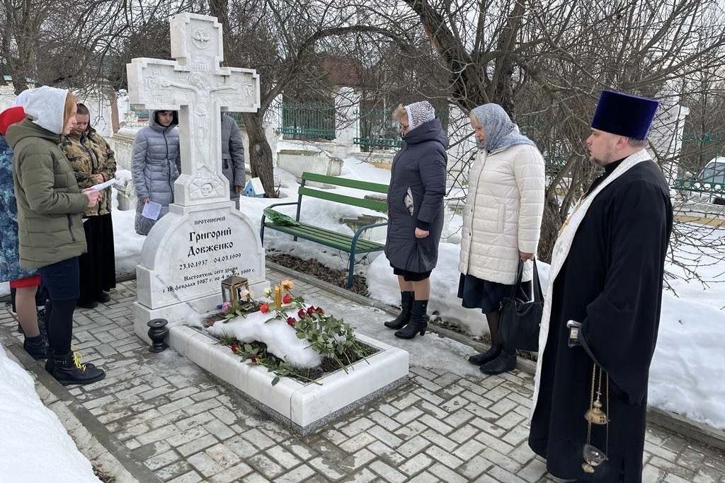 4 марта 2022 года за Божественной Литургией в Никольском храме с. Ермолино собрались прихожане, которые помнят, любят и почитают протоиерея Григория Довженко. Отец Григорий был настоятелем храма в 1985-1999 годах, и сегодня исполнилось 23 года со дня его преставления ко Господу. Настоятель Никольского храма протоиерей Виктор Ястремский совершил литию на могиле отца Григория.