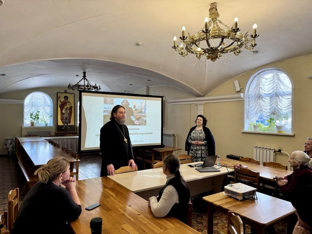 Открыл встречу настоятель Георгиевского храма, преподаватель Миссионерско-образовательного центра протоиерей Михаил Егоров. Отец Михаил представил слушателям лектора, рассказал о научных работах исследовательницы. А.А.Рогожина является выпускницей ПСТГУ и Оксфордского университета, преподаёт в Сретенской духовной академии и Школе востоковедения НИУ Высшей школы экономики.