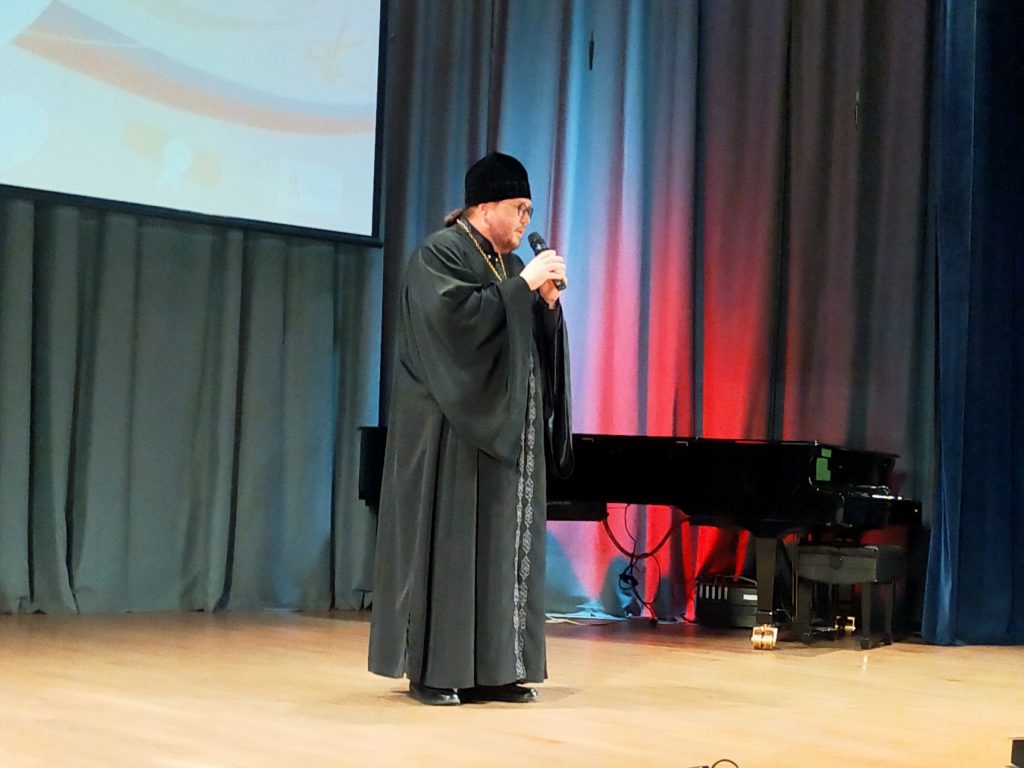 5 октября 2023 года в Ленинском городском округе отметили Международный день учителя. Поздравляя всех педагогов, обращаясь к ветеранам, занимавшим почетные места в зрительном зале, депутат Государственной Думы Вячеслав Александрович Фетисов затронул самую важную для учителей тему – нынешнее состояние дел в образовании. Особенные слова нашел для виновников торжества и глава Ленинского городского округа Алексей Петрович Спасский. А заместитель председателя Совета депутатов округа Ирина Архангельская подчеркнула: меняются поколения, но учитель остается навсегда нашей гордостью, нашим «всем». Роль учителя шутливо примерил на себя на этом празднике и.о. благочинного Видновского церковного округа, настоятель Успенского храма г. Видное иеромонах Софроний (Горохольский), пожелавший «ученикам» — педагогам Ленинского городского округа успешно сдать их «главный ЕГЭ» — научиться быть счастливыми каждую минуту жизни, хранить внутри себя мир с самим собой, с детьми, у себя дома, слушаться родителей – Господа и Пресвятую Богородицу. Учителя восприняли такое нестандартное поздравление и пожелание с улыбками на лицах и, конечно же, с пониманием в сердцах.