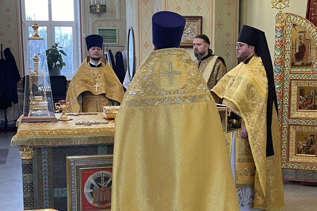 5 ноября 2023 года в храме Первосвятителей Московских п. Горки Ленинские благочинный Видновского церковного округа иеромонах Софроний (Горохольский) в сослужении заместителя благочинного Видновского церковного округа иерея Николая Шапорева, настоятеля храма иерея Игоря Чабана и диакона Игоря Чекина совершил Божественную литургию.