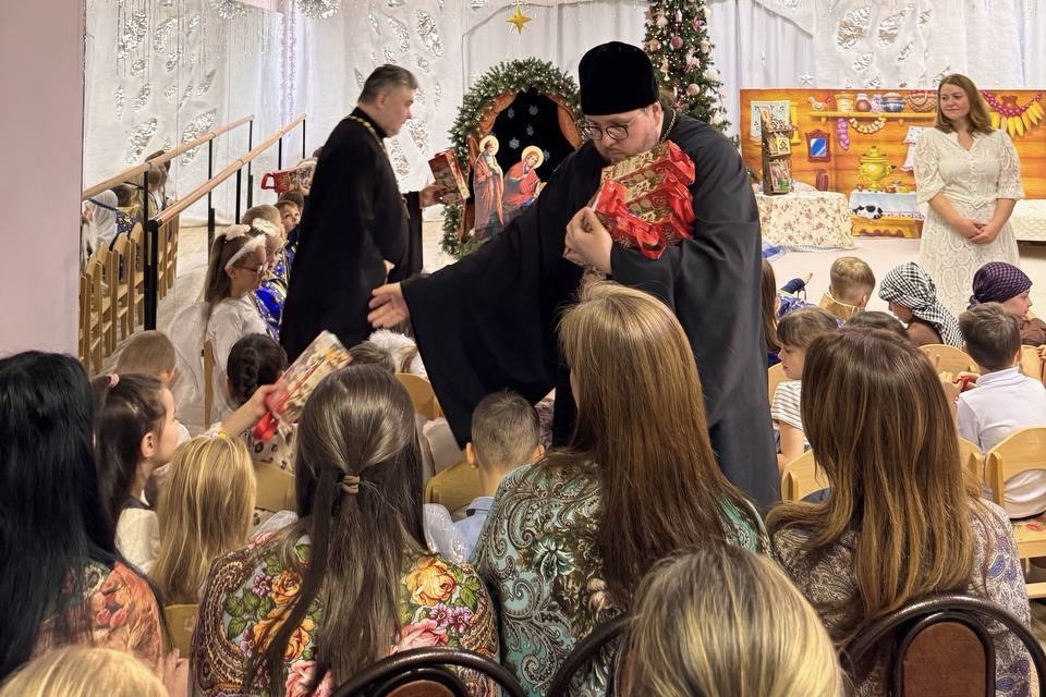 Дети вместе с родителями представили гостям тематический спектакль, отгадывали загадки, водили хороводы, играли, танцевали, а священнослужители подарили малышам сладкие гостинцы.