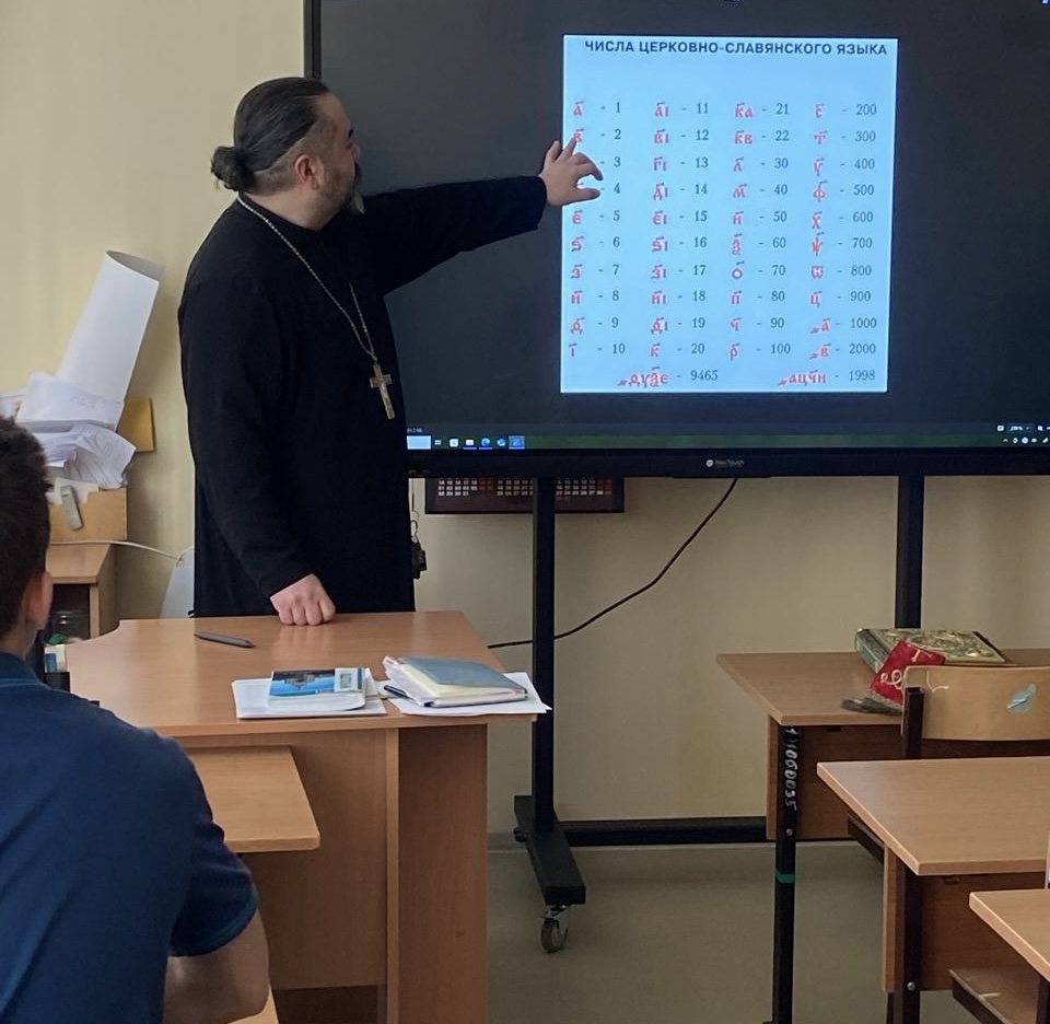 В рамках мероприятий, приуроченных ко Дню православной книги, 3 марта клирик храма Усекновения главы Иоанна Предтечи Видновского благочиния иерей Александр Стуруа провёл урок для учащихся девятых классов средней школы деревни Калиновка Ленинского г.о. Священнослужитель ознакомил учащихся с глаголицей и кириллицей, а также рассказал об особенностях церковного летоисчисления.