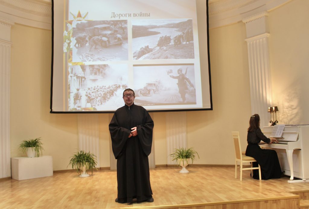 С молитвенным и вступительным словом к присутствующим от лица настоятеля Богородицерождественского храма обратилсядиакон Владимир Бобков. Он поздравил всех собравшихся с празднованием Пасхи Христовой и отметил, что очень символично Пасха в 1945 году совпала с днем памяти вмч. Георгия Победоносца и в ночь с 6 на 7 мая был подписан первый акт о капитуляции фашистских войск.