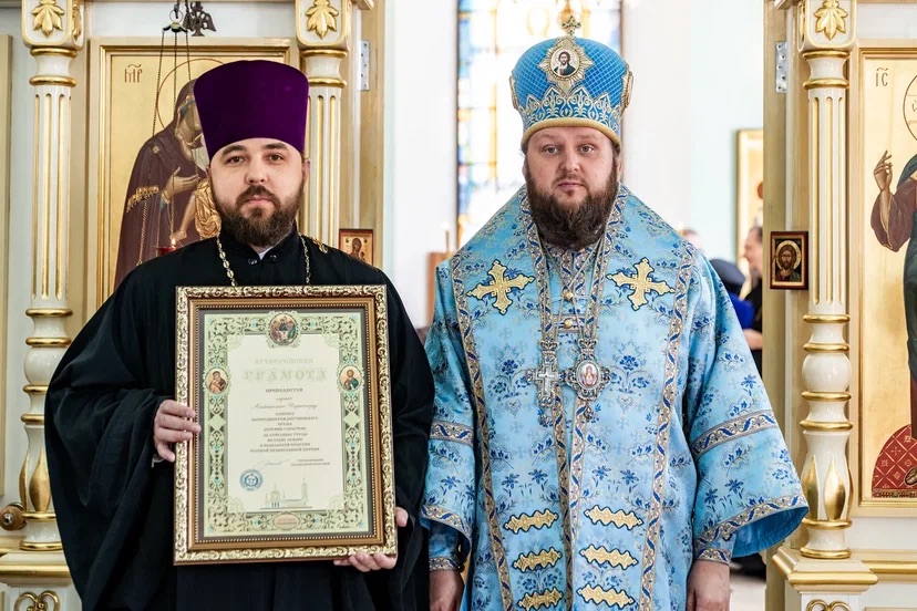 Также владыка вручил архиерейские грамоты клирику храма иерею Анатолию Чорногору, благотворителям и активным прихожанам храма за усердное служение во славу Святой Церкви.