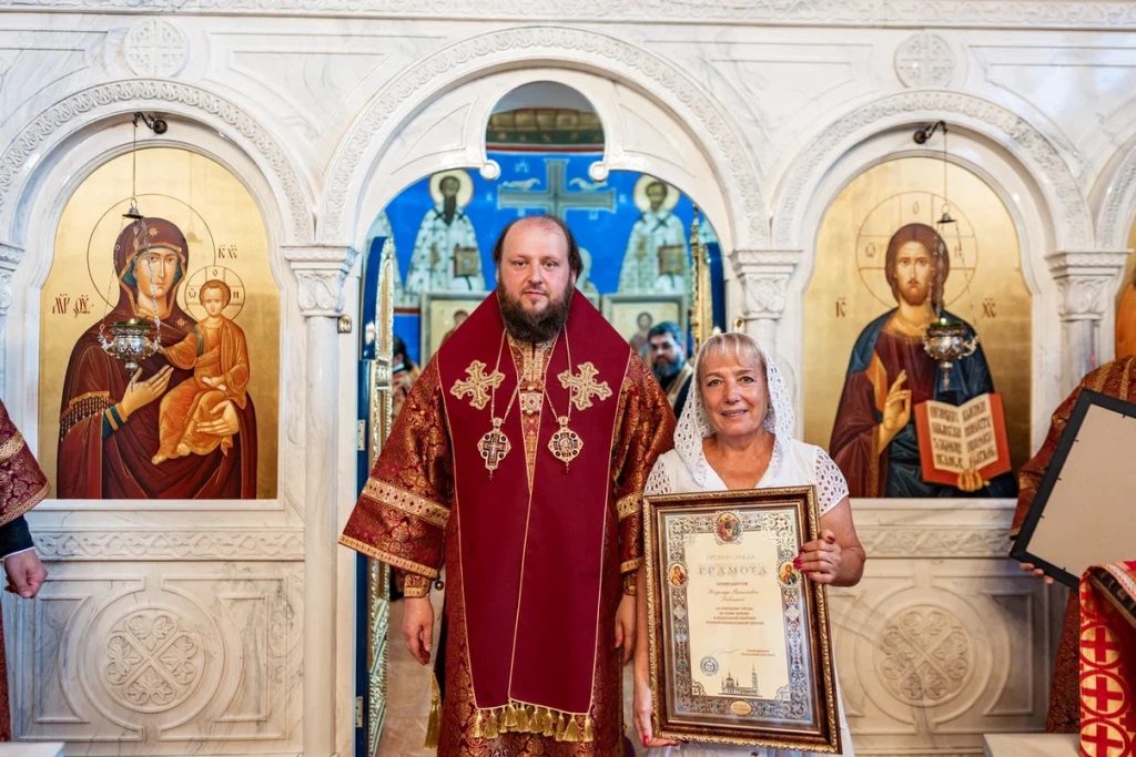 Затем владыка наградил архиерейскими грамотами тружеников храма, и обратился к духовенству и прихожанам с приветственным словом, в котором поздравил всех собравшихся с престольным праздником, а многочисленных именинниц с днём тезоименитства.