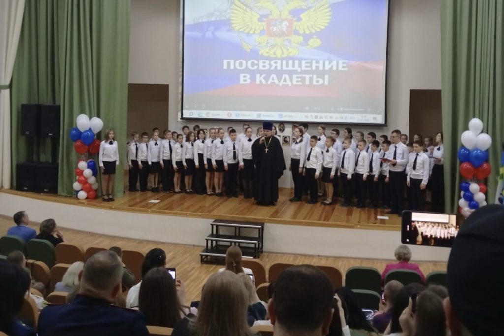 31 января 2025 года настоятель Никольского храма с. Ермолино протоиерей Виктор Ястремский посетил Видновскую СОШ N 11 и принял участие в церемонииq посвящения в кадеты учащихся пятых классов.
