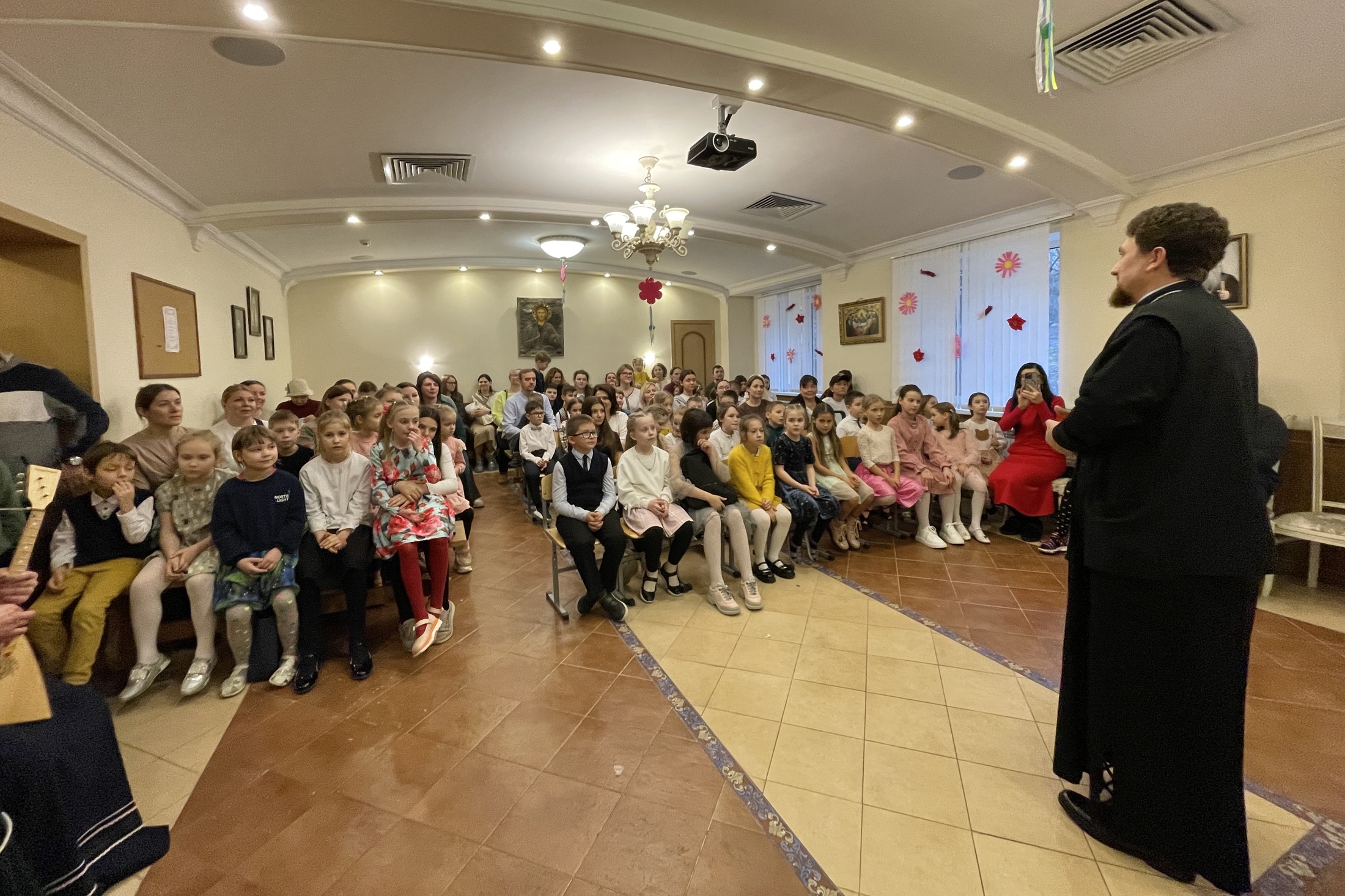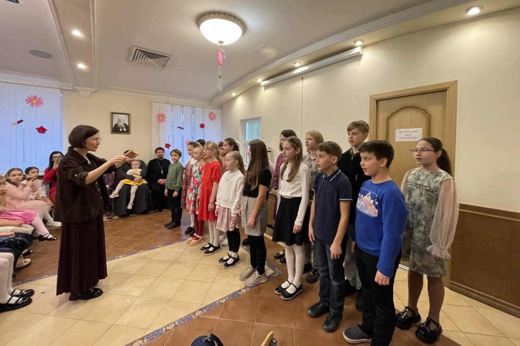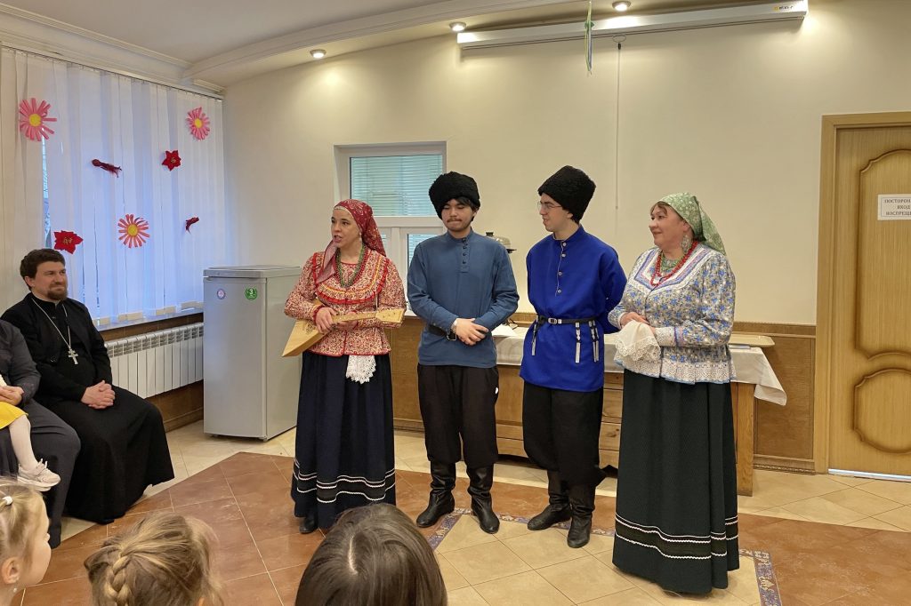На праздничном мини-концерте младший и старший детские хоры воскресной школы поздравили мам своими выступлениями, а гости воскресной школы, артисты фольклорного коллектива «Терек», порадовали зрителей исполнением народных казачьих песен.