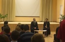 Отец Виктор рассказал детям об истории праздника. Принес с собой и показал богослужебное издание «Апостол» на церковнославянском языке, к которому все с огромным интересом прикоснулись и посмотрели. А в конце встречи подарил каждому ребёнку красочный детский молитвослов.