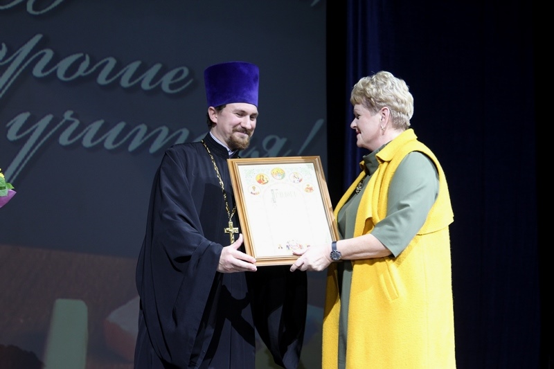 Отец Николай вручил грамоты учителям за активное сотрудничество с Видновским благочинием в сфере духовно-нравственного воспитания и образования, пожелал помощи Божией и творческого вдохновения в нелёгком труде воспитания подрастающего поколения.