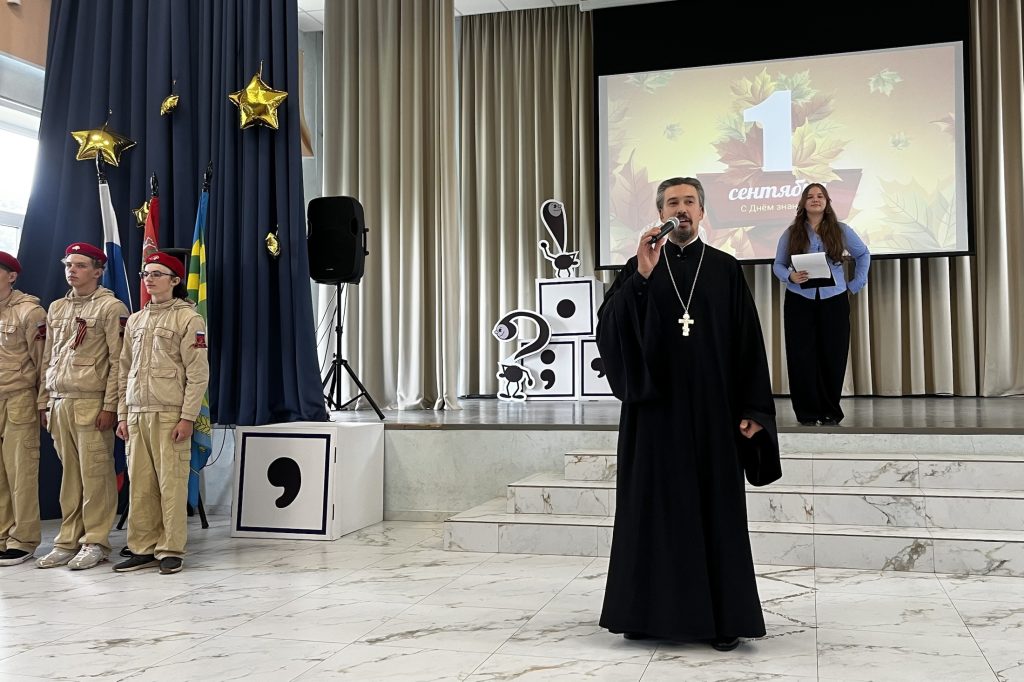 Вместе с представителями администрации и депутатами совета депутатов Ленинского городского округа священники обратились к учащимся, педагогам и родителям с поздравительными словами, пожелали всем помощи Божией в новом учебном году.