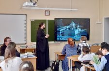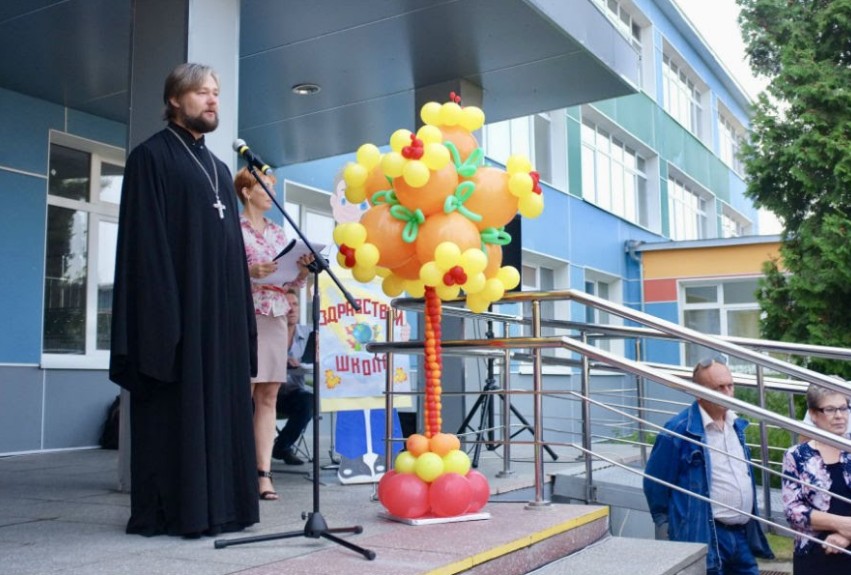 Настоятель храма во имя святой великомученицы Марины поселка Битца священник Павел Крысанов поздравил участников торжественной праздничной линейки в Бутовской средней школе №1, которая в этом году отмечает свое пятилетие. Отец Павел обратился с напутственным словом, а затем принял участие в первом уроке в этом учебном году для девятого класса.
