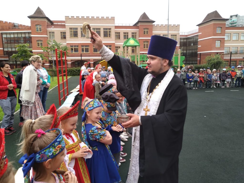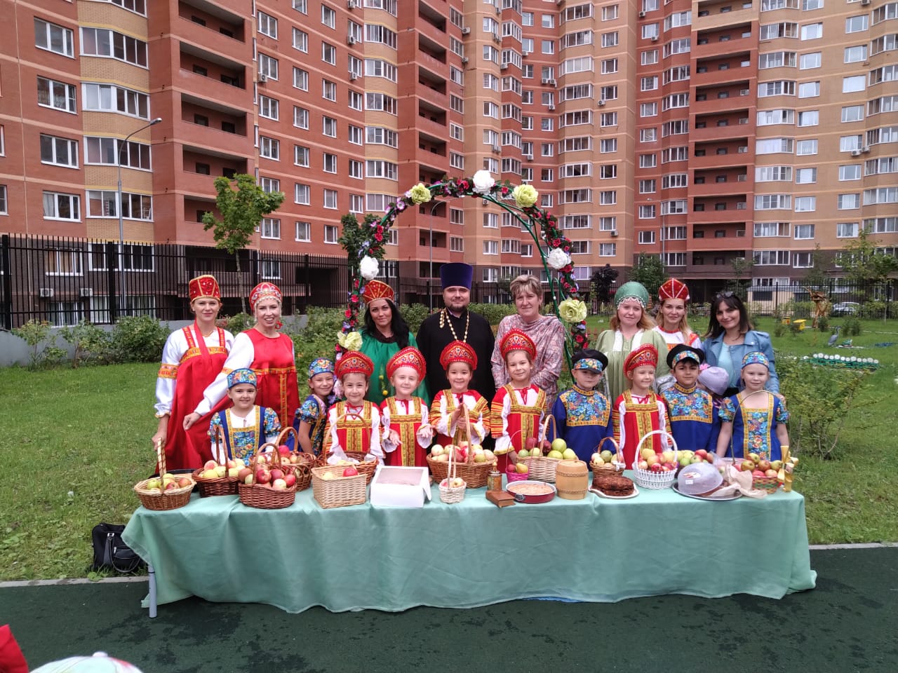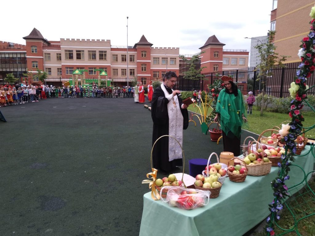 19 августа в ДОУ 19 «Яблонька» в ЖК «Зеленые аллеи» состоялся детский праздник, посвящённый Преображению Господню, в котором принял участие настоятель Никольского храма с. Ермолино протоиерей Виктор Ястремский. После выступления детей, батюшка рассказал всем собравшимся о празднике и освятил плоды нового урожая.