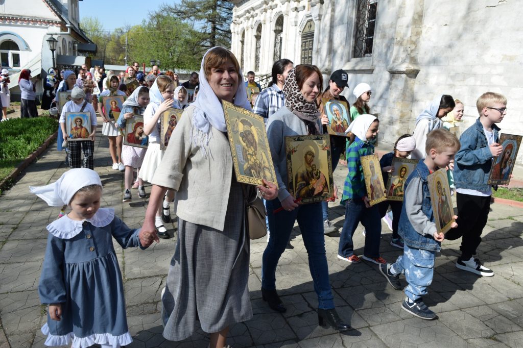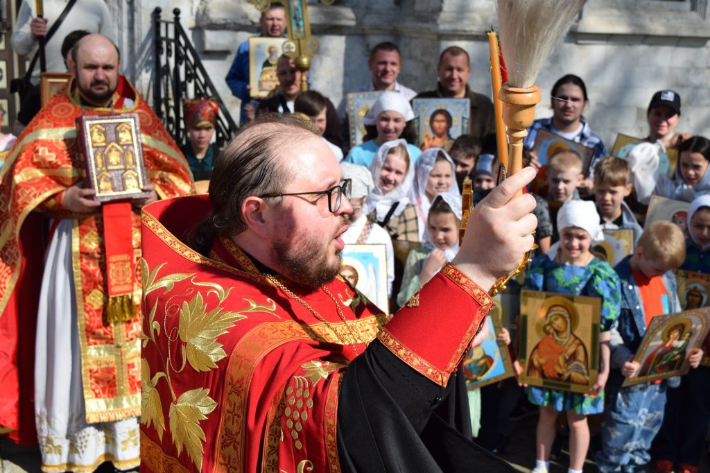 20 апреля в Успенском храме г. Видное совершилась поздняя детская пасхальная Божественная литургия, на которую пришли родители с детьми из Ленинского отделения Всероссийского общества инвалидов. После причащения Святых Христовых Тайн состоялся крестный ход, во время которого ребята несли в руках иконы.