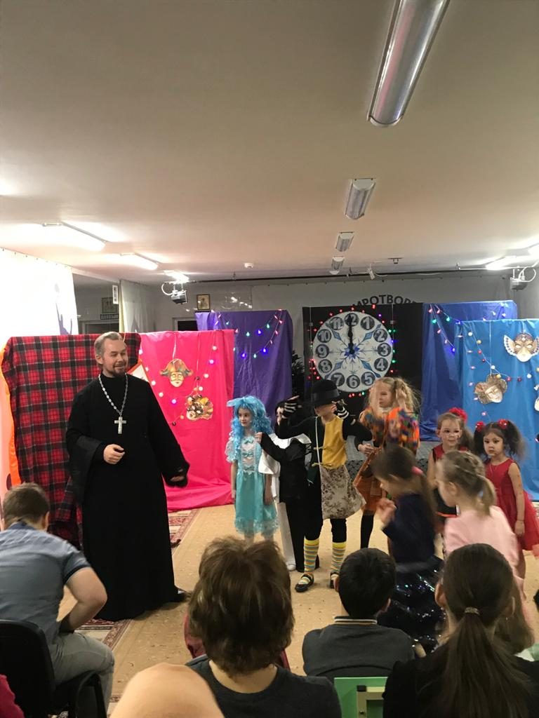 8 января 2020 г. в Никольском храме п. Володарского Детский центр «Сёма» и театральная студия «Карамелька» показали спектакль «Новогодние приключения Буратино и его друзей».