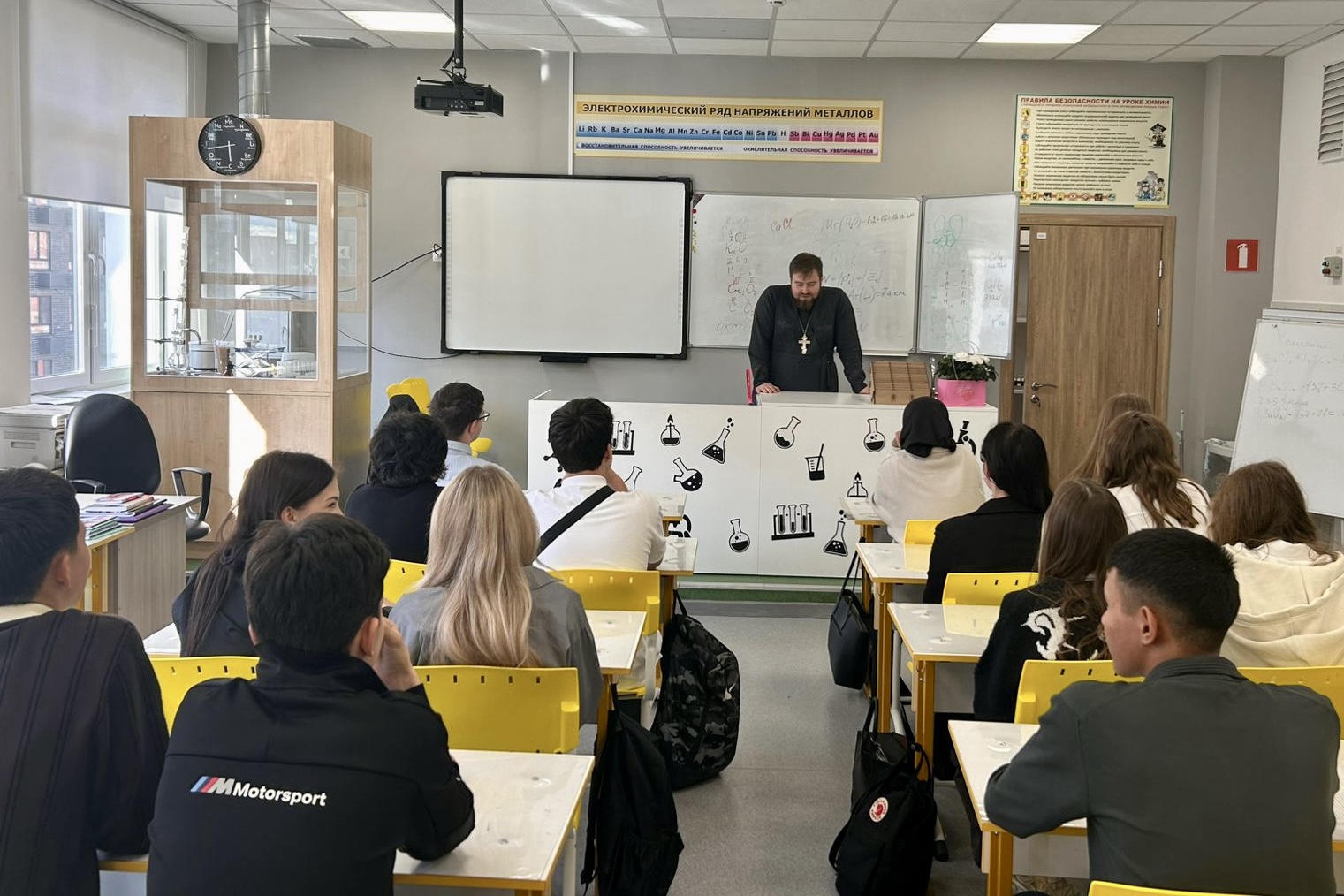 Юноши и девушки активно участвовали в обсуждении, задавали вопросы. Священник делился личным опытом и примерами из жизни. В беседе затрагивались темы дружбы, ответственности и выбора жизненного пути.