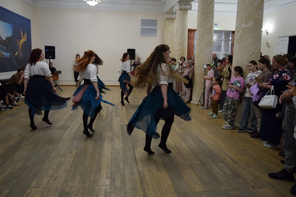 Во время перерыва в фойе представители местного отделения «Русской общины» угощали зрителей напитками, едой. Ансамбль ирландского танца «KELTIC WIND» под руководством Натальи Закускиной показал народные танцы западных христиан.