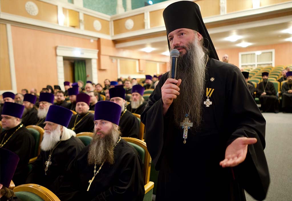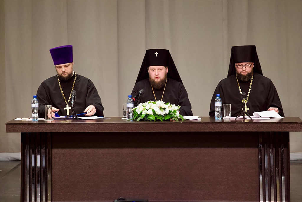 Далее со вступительным словом к участникам обратился архиепископ Подольский и Люберецкий Аксий и передал собравшимся благословение Святейшего Патриарха Московского и всея Руси Кирилла и его молитвенное пожелание помощи Божией в служении Церкви Христовой.
