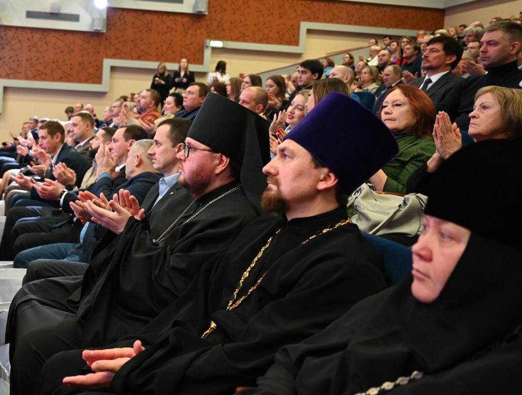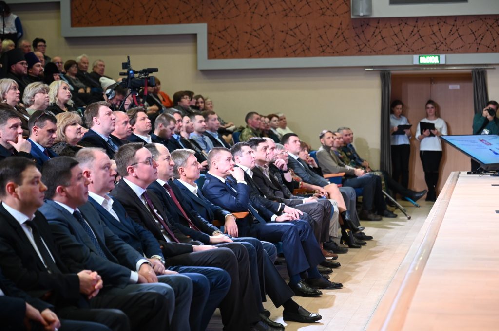 На торжественном мероприятии, начавшемся с выноса флагов Российской Федерации, Московской области и Ленинского округа, присутствовали ветераны специальной военной операции – Герои России и кавалеры орденов Мужества, депутат Московской областной Думы В. П. Жук, благочинный Видновского церковного округа иеромонах Софроний (Горохольский), его заместитель иерей Николай Шапорев, депутаты округа, руководители предприятий, представители силовых подразделений округа, директора образовательных и других учреждений.