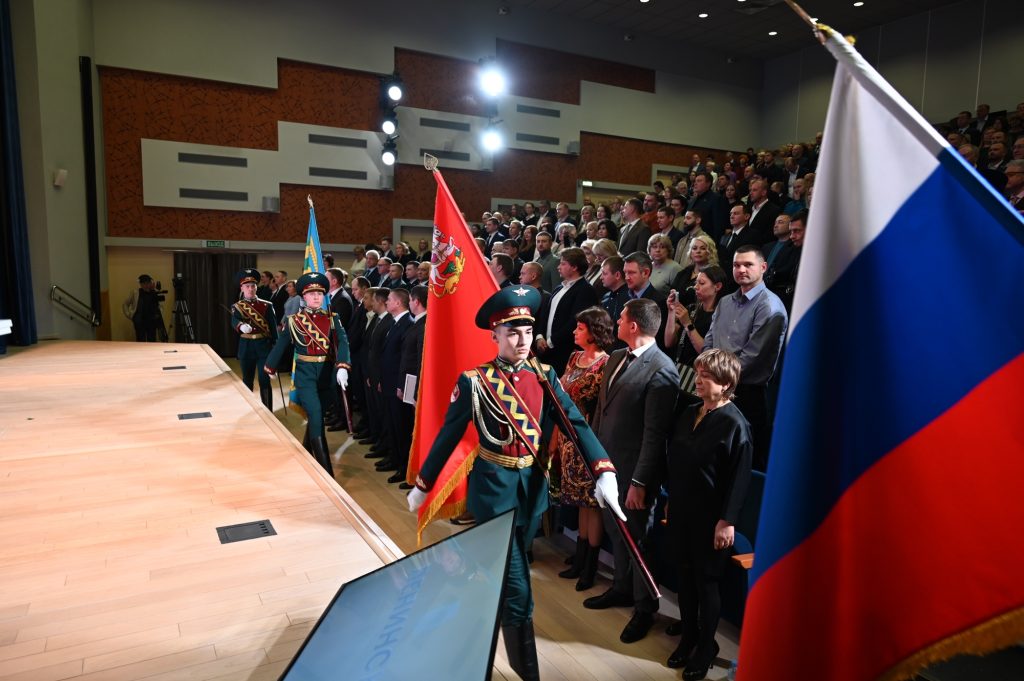 По окончании выступления Станислав Каторов вручил благодарственные письма губернатора Московской области гражданам, внесшим особый вклад в развитие Ленинского округа по итогам работы за 2024 год, – сотрудникам администрации, руководящим работникам медучреждений и другим специалистам. Вручены были почетные грамоты и благодарности Министерства территориальной политики и Министерства жилищно-коммунального хозяйства Московской области, а также Знаки главы Ленинского округа, грамоты и благодарственные письма медикам, работникам коммунальных служб, педагогам, полицейским.