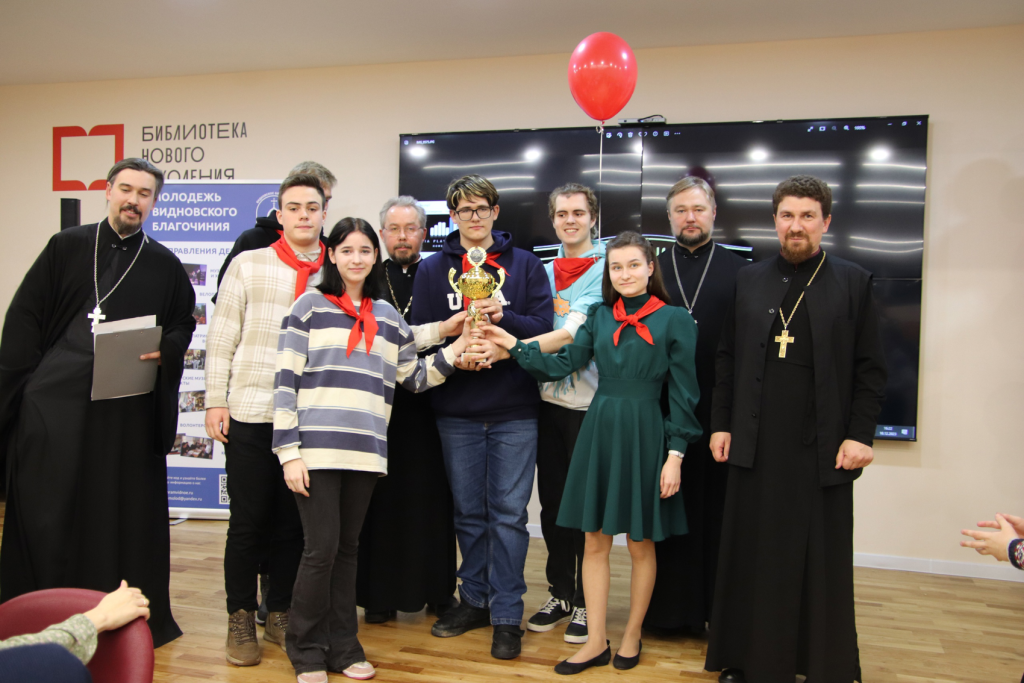 Победила в игре команда «Светоч» Александро-Невского храма г. Видное, которая получила кубок и будет представлять Видновское благочиние во II-ом туре интеллектуального турнира 28 января в г. Подольске. Также в игре приняли участие еще 7 молодежных команд приходов Видновского благочиния: «Деисис» Успенского храм г. Видное, «Парадигма» Георгиевского храм г. Видное, «Сретение» Казанского храма с. Молоково, «Филофеи» Христорождественского храма с. Беседы, «Ника» Никольского храма с. Ермолино, «Миротворцы» Никольского храма пос. Володарского, «Серафимы» Иосифо-Волоцкого храма пос. Развилка.