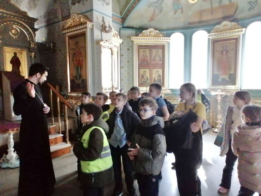 Клирик храма иерей Владимир Маркер провёл для детей экскурсию, во время которой познакомил их с устройством храма, уделив особое внимание духовному значению храмовой архитектуры. Отец Владимир подробно рассказал ребятам о символике православного храма: почему он имеет форму корабля, что означают купола и их цвета, как устроены алтарь, притвор и основная часть.