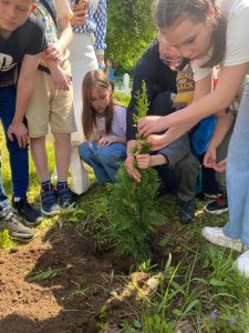 26 мая Никольский храм с. Ермолино посетили ученики Видновской СОШ N 7. В честь окончания начальной школы ребята вместе с преподавателями решили посадить дерево на территории храма. Выбрали для этой цели саженец туи. Каждый старался принять участие и помочь копать, поливать, рыхлить. После экскурсии по храму, которую провел иерей Серафим Барабаш, ребят пригласили на чаепитие со сладостями в приходской дом.