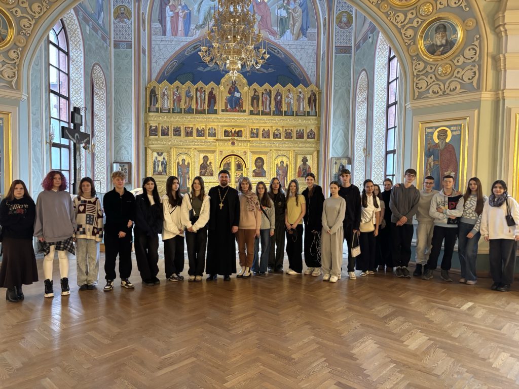 Старшеклассники посетили Соборную палату, расположенную на втором этаже Московского епархиального дома, познакомились с проходящей здесь уникальной выставкой, посвященной 100-летию преставления святителя Тихона, патриарха Московского и всея Руси. Экскурсовод рассказал учащимся о жизни, трудах и исповедническом подвиге святителя Тихона.