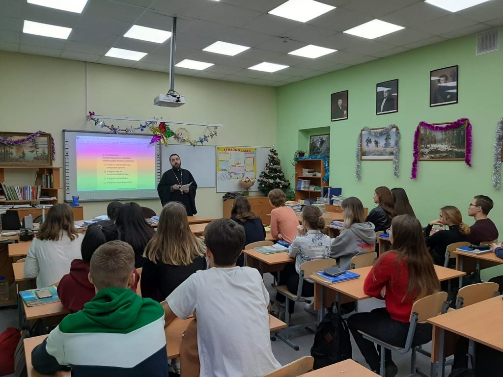 В рамках проведения XVII Московских областных Рождественских образовательных чтений, 18 декабря 2019 года клирик Богородицерождественского храма с. Тарычево священник Анатолий Чорногор встретился с учениками 11 класса МБОУ Видновской СОШ № 1.
