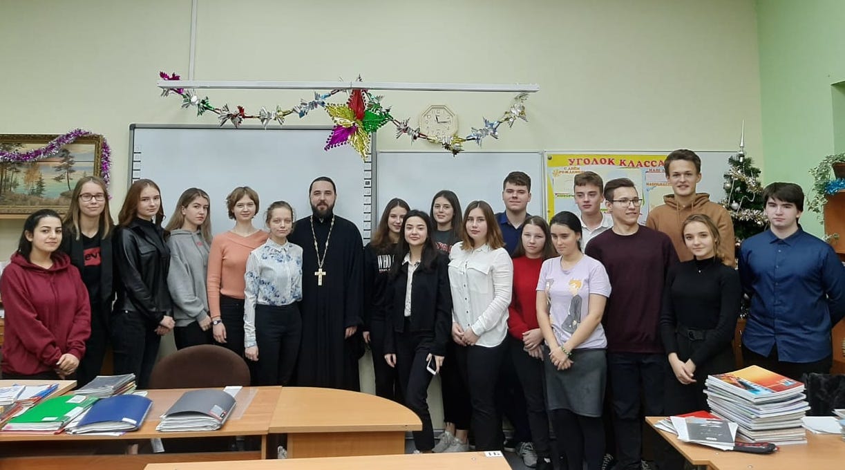 В рамках проведения XVII Московских областных Рождественских образовательных чтений, 18 декабря 2019 года клирик Богородицерождественского храма с. Тарычево священник Анатолий Чорногор встретился с учениками 11 класса МБОУ Видновской СОШ № 1.