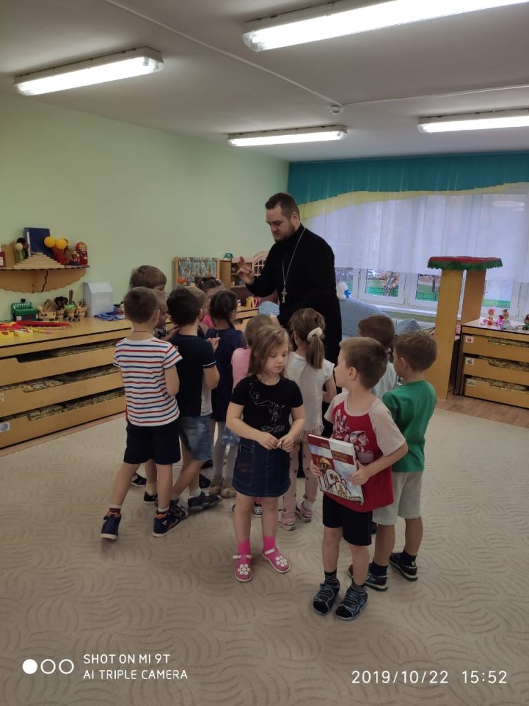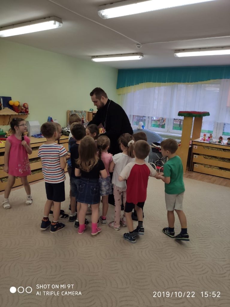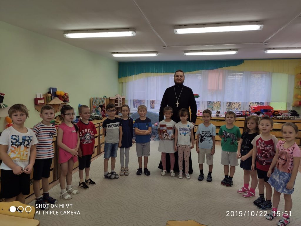 22 октября 2019 г. клирик храма Николая Чудотворца иерей Серафим Барабаш пришёл в гости к ребятам из ДОУ 9 «Солнышко» и ДОУ 2 «Колобок».