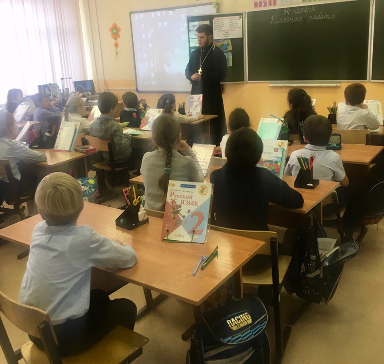 В рамках Рождественских чтений, проходящих в Видновском благочинии, 14 ноября 2018 года в Измайловской средней школе состоялась встреча клирика Троицкого храма поселка Измайлово священника Дмитрия Шубы с учащимися 1-2-х классов на тему «Что такое грех?».