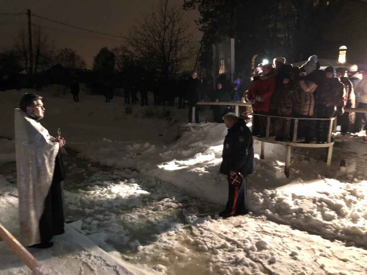 После чтения праздничного Евангелия и слова настоятеля храма протоиерея Виктора Ястремского обращенного ко всем собравшимся началось всеобщее погружение в священные воды купели. Первым, показав пример всем собравшимся, окунулся настоятель храма храма о. Виктор Ястремский.