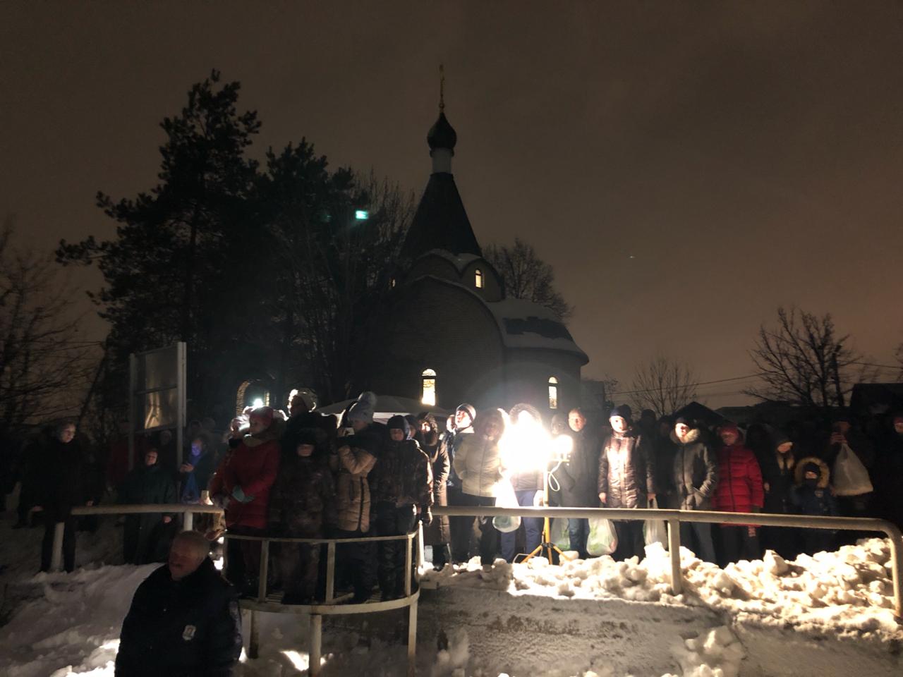 Возле Иоанно-Предтеченского храма д. Калиновка после Великого освещения воды, служители Алтаря Господня вместе с прихожанами, крестным ходом проследовали к «Иордани», которая была, приготовлена на водоеме в непосредственной близости у храма. Где собралось ок. 700 человек желающих принять участие в Крещенском купании.