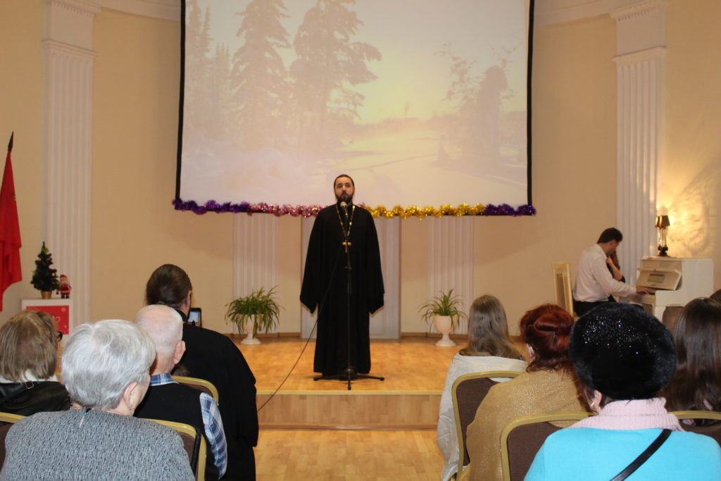 Настоятель Богородицерождественского храма с. Тарычево священник Вячеслав Корниенко перед началом концерта поприветствовал всех собравшихся, рассказав о значимости праздника Крещения Господня и поздравил всех именинниц с Днем Ангела. Батюшка также попросил всех помолиться о упокоении всех усопших в годы блокады Ленинграда, 75 – летие освобождения от которой в этот день вспоминала вся страна.