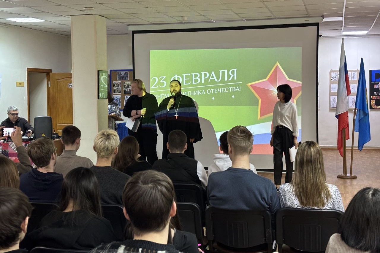 19 февраля по приглашению администрации Московского регионального социально-экономического института клирик храма Рождества Пресвятой Богородицы деревни Тарычёво Ленинского г.о. иерей Анатолий Чорногор принял участие в праздничном мероприятии посвящённом Дню Защитника Отечества.