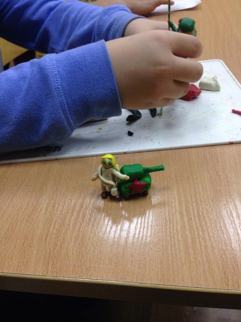 В ноябре месяце в течение нескольких занятий по ДПИ дети из воскресной школы под опытным руководством своих педагогов работали над созданием различных поделок, цель которых было наглядно показать фрагменты и различные эпизоды Великой Отечественной Войны. Военная техника, планы боевых сражений, флаги, ордена и медали и многое другое, что дети смогли сделать своими руками – стало символическим выражением душевных качеств, присущих русскому воинству: жертвенная любовь, мужество, героизм, отвага, также присущие всем людям, чьи судьбы сплелись воедино с войной — жизнь и смерть, радость и горе, счастье и страдание.
