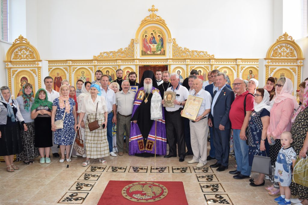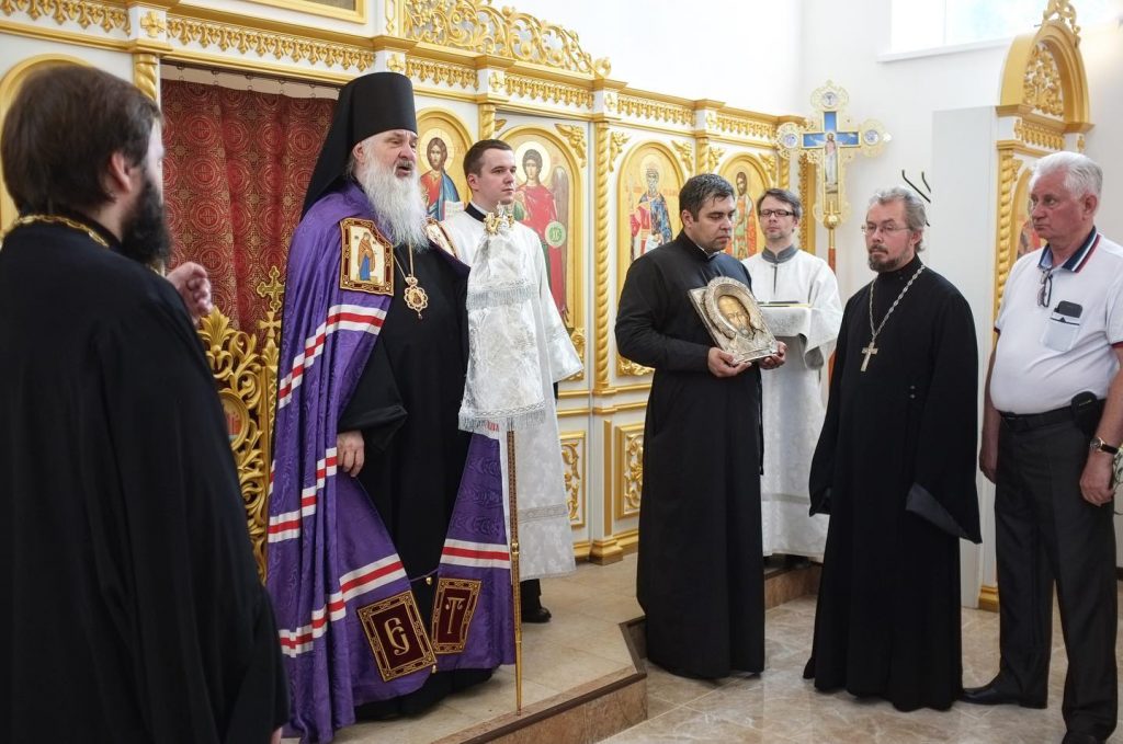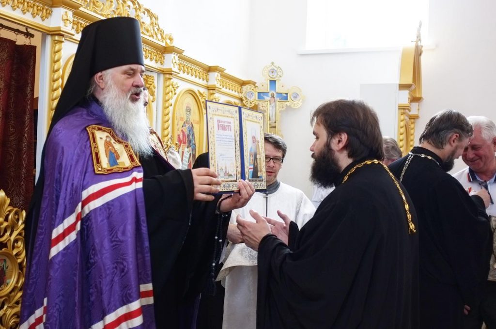 Ваше преосвященство, дорогой Владыка Тихон! Позвольте Вас поблагодарить за то, что нашли возможность посетить нас и совершить великое освящение этого храма. Для нашей общины в этот день радостно и ценно разделить совместную молитву с нашим архипастырем. Мы будем молиться в новоосвященном храме о дорогом нашему сердцу Владыке Ювеналии и о Вас, чтобы Господь наш Иисус Христос даровал Вам крепкого здравия и сил в Вашем нелегком архипастырском служении. Позвольте от всего нашего прихода преподнести Вам на молитвенную память образ святого равноапостольного князя Владимира. Многая и благая лета Вам, дорогой Владыка!
