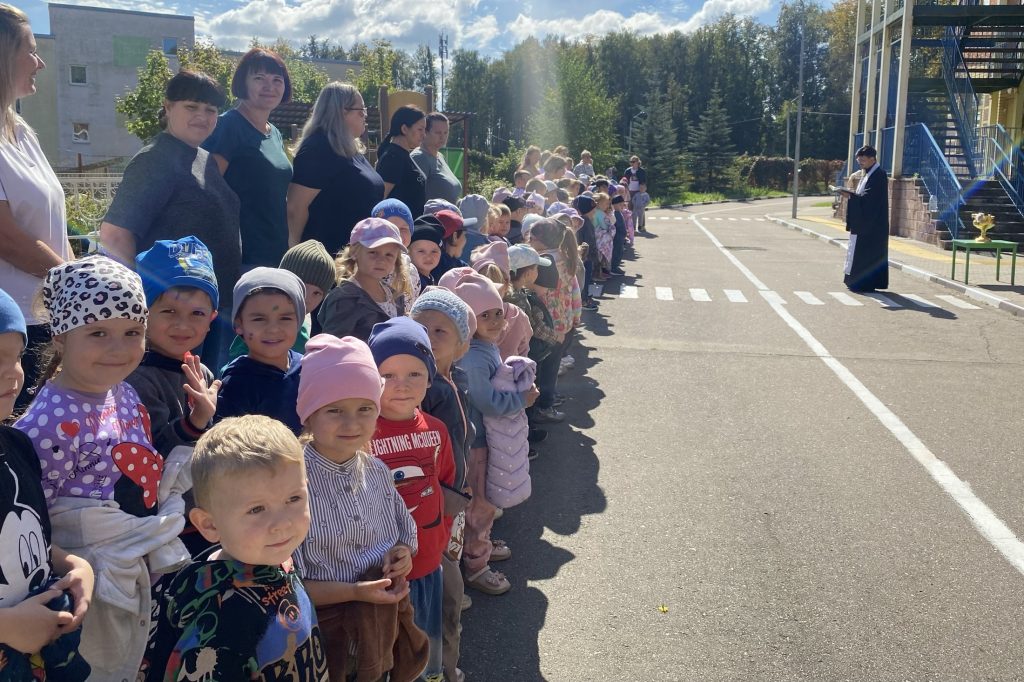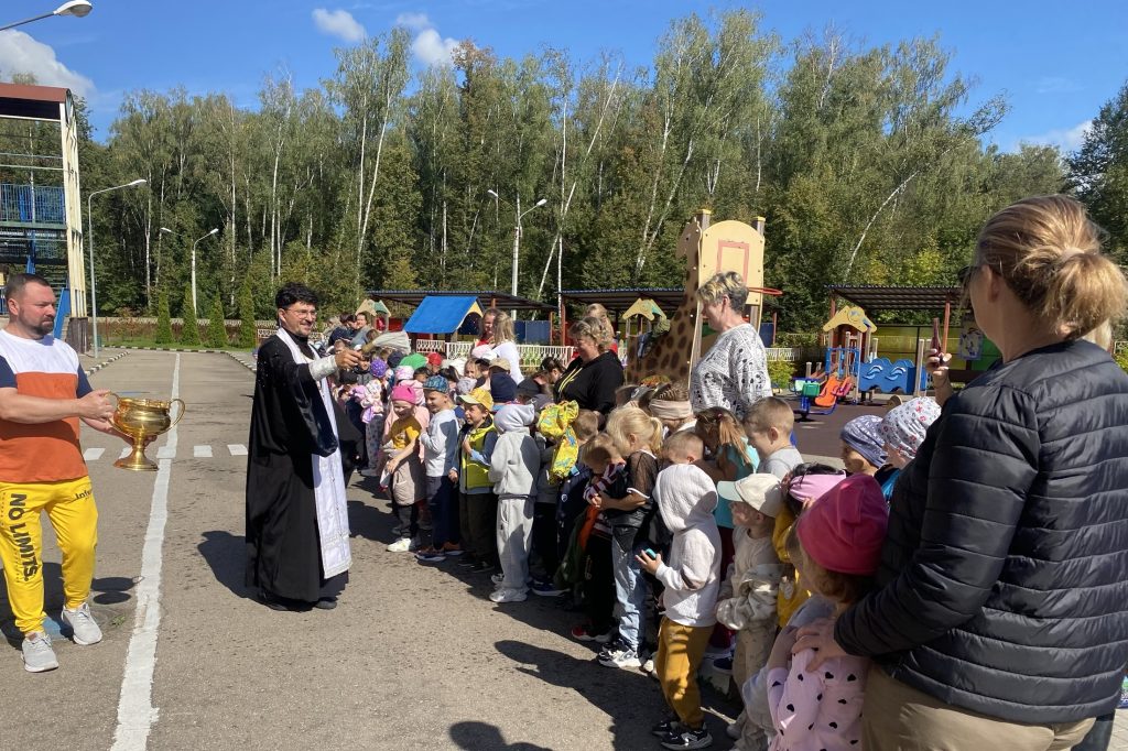 5 сентября в детском саду «Ягодка» посёлка Володарского Ленинского г.о. клирик Никольского храма посёлка Володарского иерей Максим Гортинский совершил молебен перед началом учебного года.