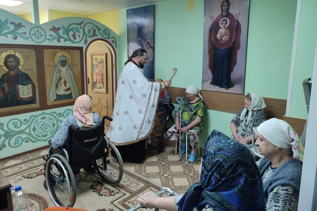 9 июня, в день Святого Духа, настоятель Богородицерождественского храма деревни Тарычёво иерей Вячеслав Корниенко посетил Дом милосердия «Видное». Священник совершил водосвятный молебен в храме преподобномученицы Елизаветы при Доме милосердия. После молебна отец Вячеслав пообщался с проживающими, ответил на интересующие их вопросы о духовной жизни.