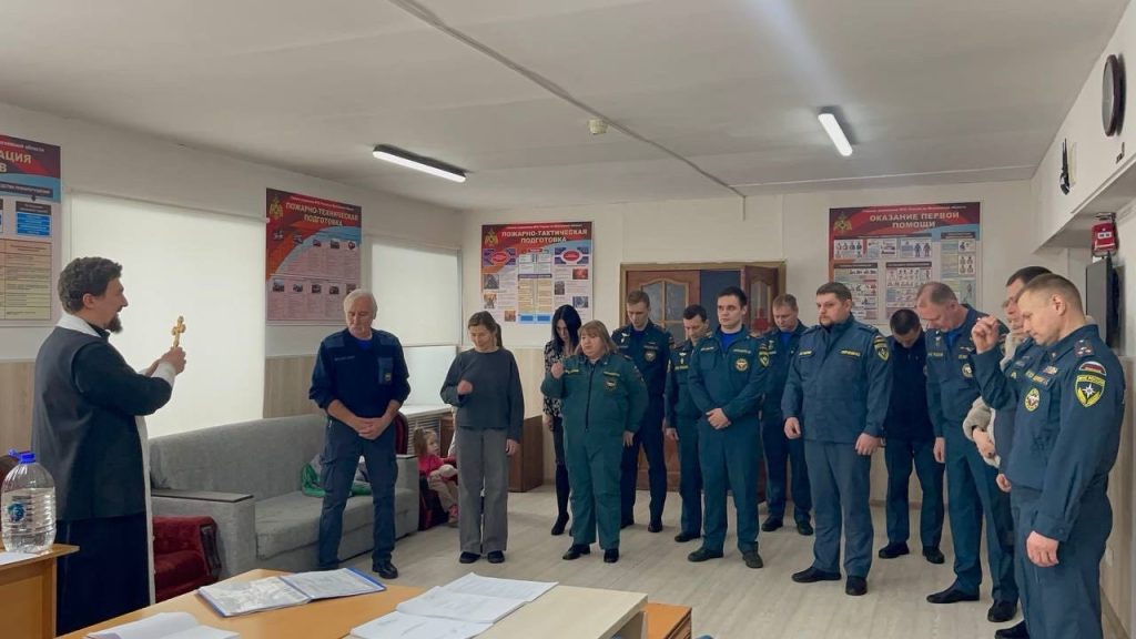 После молебна отец Николай окропил крещенской водой присутствующих и затем помещения пожарной части, пожелал спасателям помощи Божией в их опасном и ответственном служении.