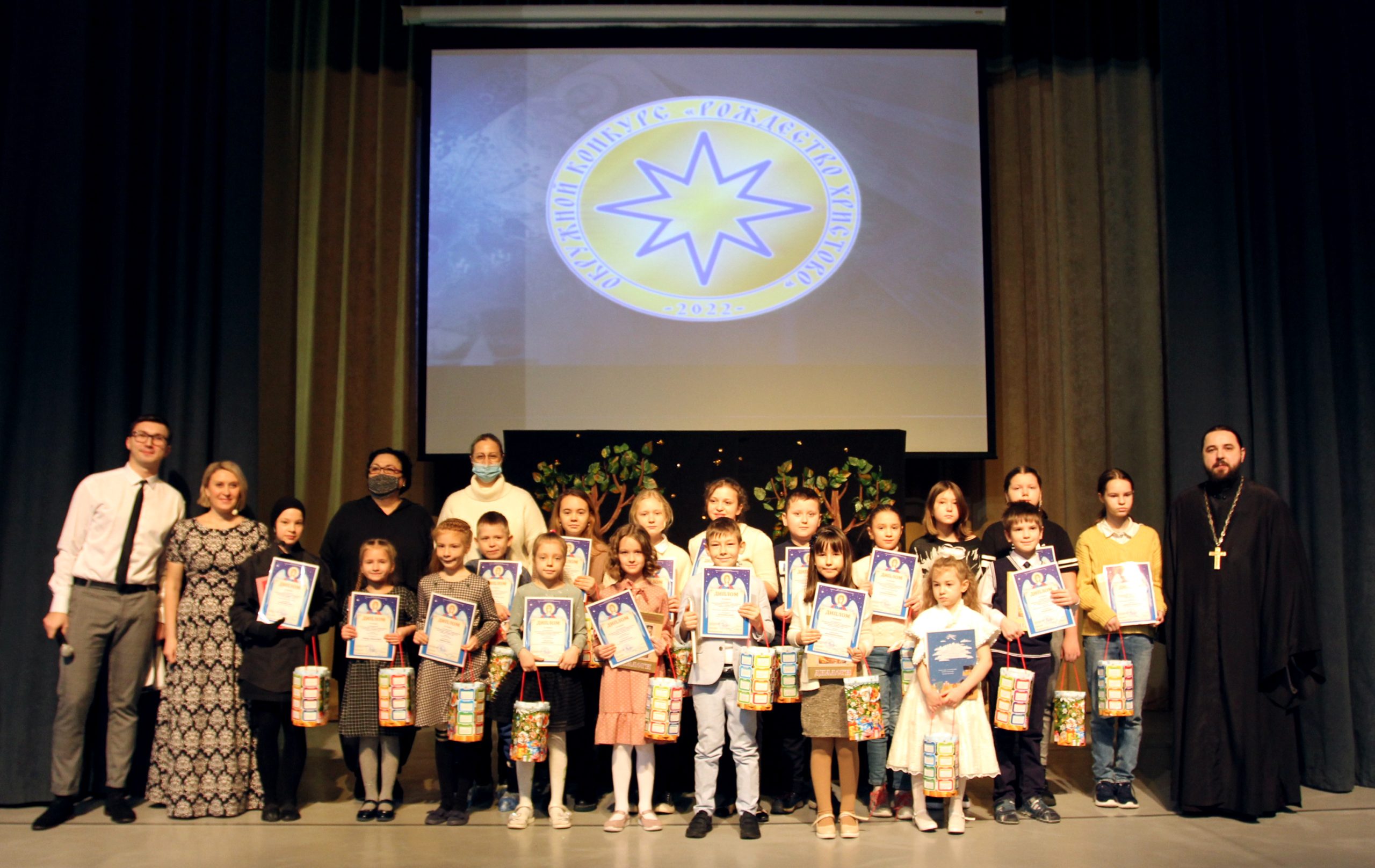 Для всех участников коллектив Центра детского творчества «Импульс» подготовил Рождественский спектакль. После представления победителей наградили на сцене. В церемонии награждения приняли участие Начальник Управления образования Ленинского г. о. Киселева Н. Н., клирик Александро-Невского храма г. Видное иерей Анатолий Фадеев, клирик Богородицерождественского храма с. Тарычево иерей Анатолий Чорногор.