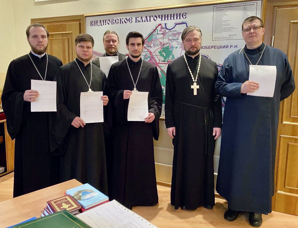 20 апреля 2021 года в Георгиевском храме г. Видное благочинный Видновского церковного округа священник Дмитрий Березин вручил богослужебные награды священникам благочиния к празднику Святой Пасхи.
