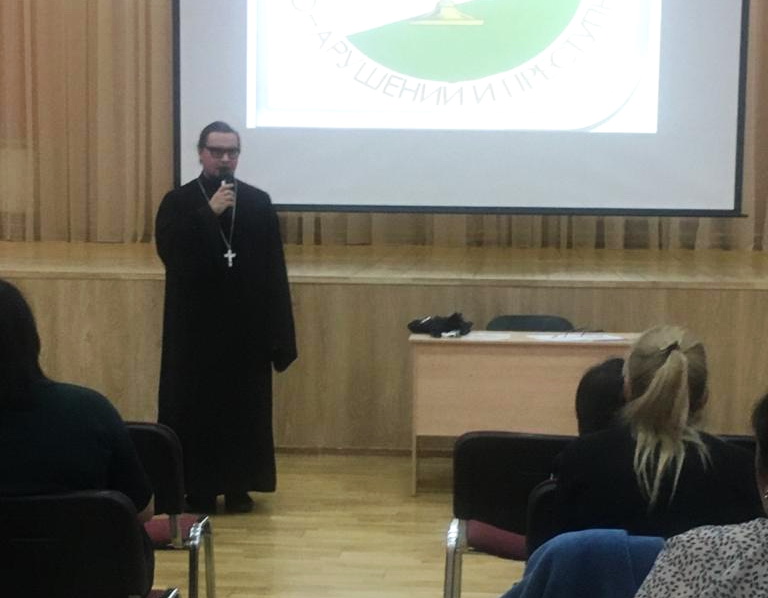 По просьбе заместителя директора Векшиной Нины Анатольевны отец Павел поговорил с родителями об обидах и прощении. На эту тему был просмотрен короткометражный фильм «Бритва», который после просмотра священник обсудил с педагогами и родителями.