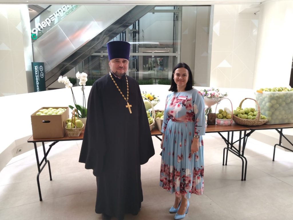 в ТЦ «Ларец» миниполиса «Краски жизни» протоиерей Виктор Ястремский, настоятель Никольского храма с. Ермолино, совершил молебен в честь праздника, освятил яблоки и обратился к жителям микрорайона и работникам торгового центра с поздравительным словом. Волонтеры в этот день раздавали всем посетителям торгового центра освящённые яблоки.