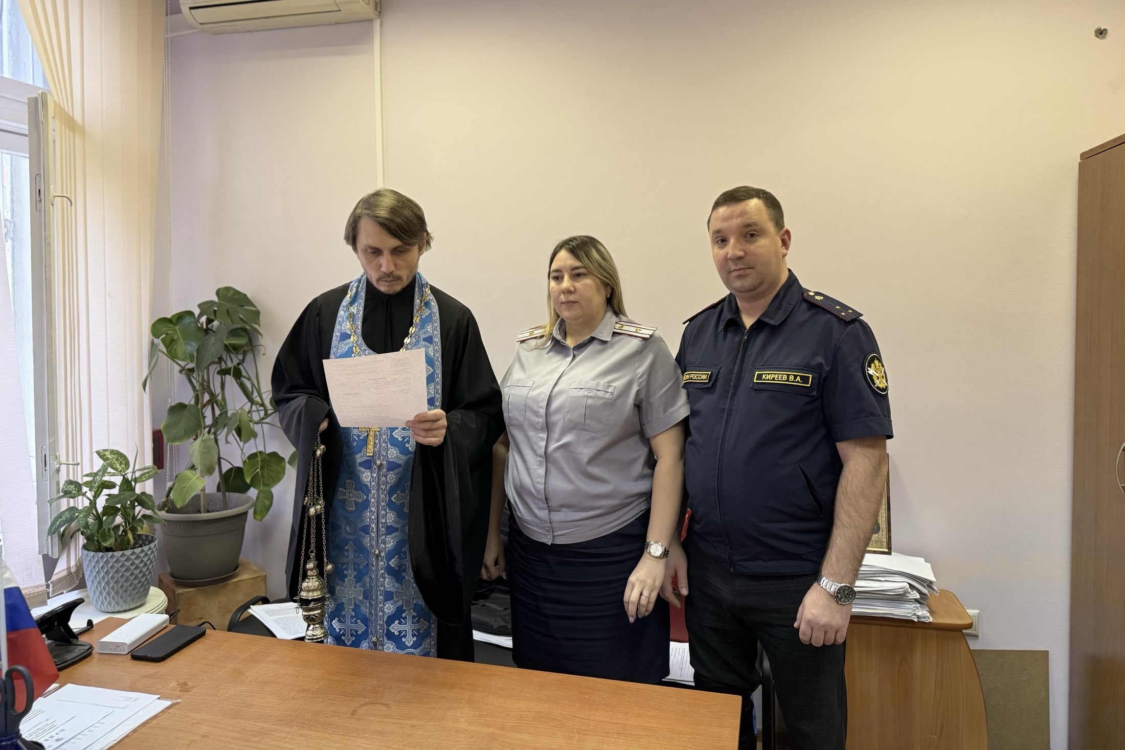 В ходе встречи отец Роман побеседовал с сотрудниками уголовно-исполнительной системы и затем вместе с присутствующими совершил молебен о здравии всех здесь служащих.