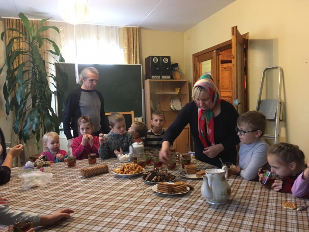 На линейке и открытом уроке дети вместе с родителями познакомились с преподавателями воскресной школы, сформировали младшую и старшую группы. После занятия взрослые и ребята устроили совместное чаепитие.