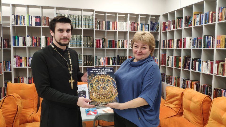 18 ноября епархиальный ответственный за организацию книгораспространения и развития библиотечной сети иерей Владимир Маркер встретился с исполняющей обязанности директора Централизованной библиотечной системы Ленинского г.о. Е.А.Рогозянской. В ходе встречи её участники обсудили перспективы взаимодействия епархии и библиотеки, и были определены ключевые направления совместной работы. В завершение встречи отец Владимир передал в фонд библиотеки книгу о Покровском храме Московской духовной академии.