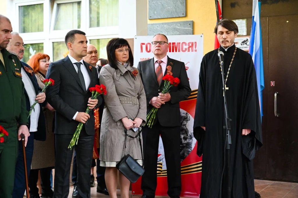 7 мая настоятель Богородицерождественского храма села Булатниково иерей Роман Маисурадзе посетил МБОУ «Видновская СОШ № 5», где состоялось открытие мемориальной доски погибшему во время специальной военной операции кавалеру ордена Мужества Красулину Виталию Дмитриевичу.
