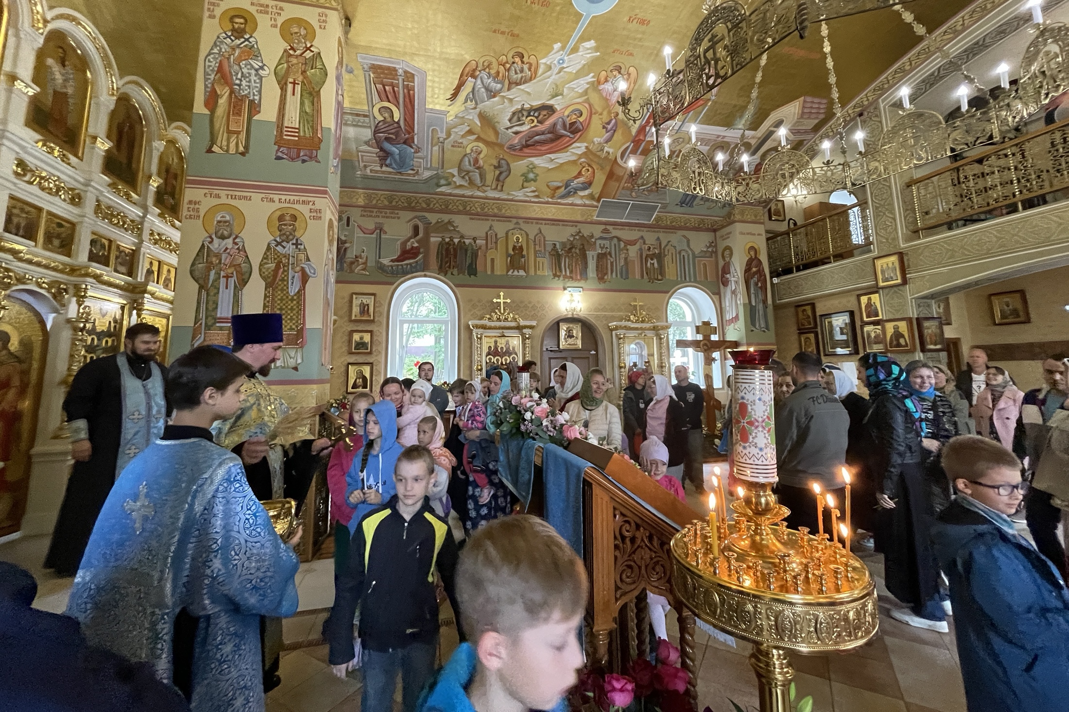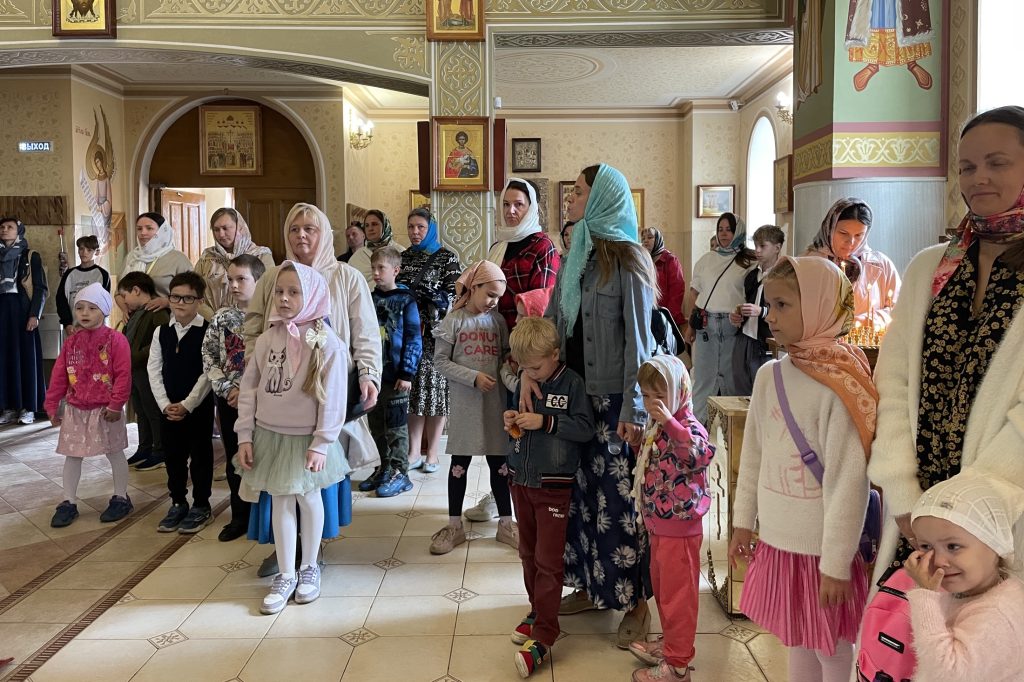 За богослужением молились учащиеся воскресной школы и их родители. После молебна состоялась общешкольное родительское собрание. Отец Николай рассказал об организации учебного процесса в воскресной школе, о предстоящих совместных богослужениях, паломнических поездках, конкурсах, праздничных мероприятиях.