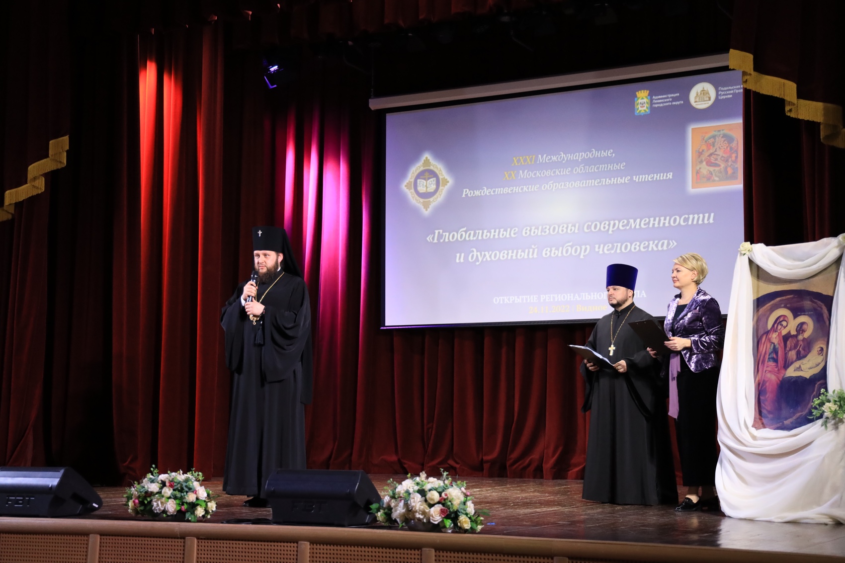 24 ноября 2022 года в городе Видное состоялось открытие регионального этапа XХXI Международных Рождественских образовательных чтений «Глобальные вызовы современности и духовный выбор человека». Открытие Чтений прошло в два этапа. Утром 24 ноября в Георгиевском храме г. Видное управляющий Подольской епархией архиепископ Подольский и Люберецкий Аксий в сослужении духовенства Подольской епархии совершил Божественную Литургию. На богослужении присутствовали представители администрации Ленинского г.о., руководители управлений образования городских округов Подольской епархии.